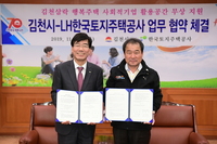 김천시(시장 김충섭)는 14일 LH 한국토지주택공사와 김천삼락 행복주택 사회적기업공간 입주를 위한 협약을 체결했다.이번 협약은 경북도내에서는 최초로 시행되는 사업으로 한국토지주택공사에서 ‘공공주택 업무처리지침’에 의거 사회적기업의 공익목적기관의 자립, 조기안정화 성장을