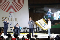 내년 ‘제40회 전국장애인체전’개최지인 경북도가 지난 19일 서울 잠실실내체육관에서 열린 제39회 전국장애인 체육대회 폐회식에서 ‘제40회 전국장애인체전 대회기’를 전달받았다.이날 윤종진 경북도 행정부지사는 이명호 대한장애인체육회장으로부터 대회기를 전달받았다.