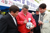 “축구종합센터, 반드시 예천에 유치합시다.”재경예천출향인들이 대한민국 축구종합센터 유치를 위해 똘똘 뭉쳤다.이들은 센터 후보지 선정을 위한 현장실사를 앞 둔 휴일인 21일 서울 여의도 국회운동장에서는‘축구종합센터 예천 유치’를 염원하는 퍼포먼스를 연출해 눈길을 끌었다.