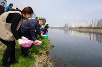 경주시는 지난 29일 현곡면 금장리 형산강에 은어 치어 3만 마리를 방류하고 형산강 환경정화운동 및 캠페인을 실시했다.이날 행사는 환경운동실천협의회, 형산강살리기봉사회 등 지역단체와 현곡면 지역주민, 공무원 등 약 50여명이 참석해 직접 은어를 방류하는 체험 형식으로