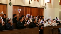 대구가톨릭대 신학생들이 100년 전 선배들이 조국의 독립을 염원하며 뜨겁게 외쳤던 대한독립만세를 재연했다. 대구가톨릭대는 5일 유스티노캠퍼스 내 성유스티노성당에서 ‘3‧5 만세운동 기념 작은 음악회’를 개최했다. 이곳은 대구가톨릭대의 모태인 성유스티노신학교