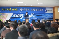 이희진 영덕군수가 지난 2일 군청 대회의실에서 열린 시무식에서 신년사를 통해 2019년 군정운영 방향을 밝혔다새해 영덕군은 ‘신뢰받는 깨끗한 행정’을 바탕으로 ‘풍요로운 100년의 먹거리 창출’과 ‘2000만 관광객시대로의 도약’의 원년이 되도록 군민의 안전과 미래 먹