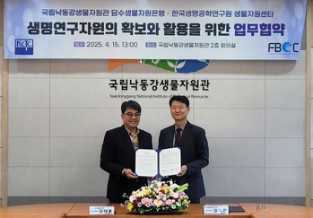 환경부 산하 국립낙동강생물자원관은 15일 국가 생명연구자원의 확보, 보존과 활용을 위한 협력 체계 구축을 목적으로 한국생명공학연구원 생물자원센터와 업무협약(MOU)을 체결했다.이번 협약은 미생물 소재 분야에 특화한 두 기관이 각각의 전문성과 기반시설을 바탕으로 협력체계