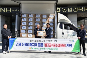 하나로마트 경북대구지역선도협의회(회장 예천농협 이달호 조합장)는 11일 농협 경북본부(본부장 최진수)를 찾아 경북 산불피해지역 이재민을 위한 쌀가공식품(쌀국수 500만 원 상당)을 전달했다.경북대구선도협의회는 지난 9일 임원회의를 열고 경북지역 산불피해복구와 피해지역