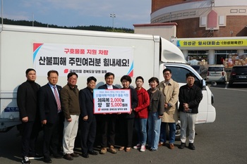 국민의힘 경북도당(위원장 박형수 국회의원)은 4월 1일 경북 관내에서 발생한 대규모 산불로 큰 피해를 입은 주민들을 돕기 위해 구호품을 전달했다.이번 산불로 한순간에 삶의 터전을 잃어버린 지역 주민들의 어려움을 함께 나누고자 생활복(체육복) 및 양말 등 3000여만 원