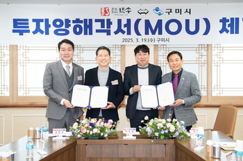경북 구미시는 19일 시청에서 백송(대표 박흥열), 세아메카닉스(대표 이성욱)와 김장호 시장과 박교상 의장을 비롯한 관계자들이 참석한 가운데 127억원 규모의 투자양해각서(MOU)를 체결했다. 이에 따라 백송은 구미 국가산업단지 1공단에 부지 4645㎡ (14