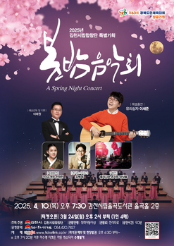경북 김천시립합창단은 오는 10일 오후 7시30분 율곡도서관에서 봄밤음악회를 개최한다. 이번 음악회에는 가수 ‘유리상자’의 이세준과 가야금 병창 명인 민정민이 특별 출연하고, ‘플라시보 콘서트 앙상블’의 협연으로 우리 가곡, 유명한 세계의 명곡, 대중가요 편곡