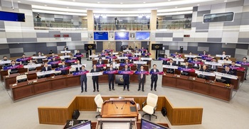 경상북도의회(박성만 의장)는 2025년 구미에서 열리는 ‘구미아시아육상경기선수권대회’의 성공적인 개최를 기원하며, 제353회 제1차 본회의 종료 후 도의원 전원이 함께하는 퍼포먼스를 진행했다.도의회는 구미아시아육상경기선수권대회가 경상북도의 위상을 높이고, 구미시를 비롯