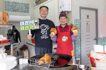 경북 칠곡군 왜관읍에는 30년 외길인생이 완성한 호떡으로 지역 명품이 된 웰빙왕호떡(사장 차태일·61)이 자리 잡고 있다. 그렇잖아도 매일 전국에서 사람들이 찾아와 줄을 서는데, 대경선 광역철도 개통과 함께 구매 대기 행렬이 더 길어졌다. 칠곡군 대표
