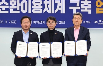 경상북도는 7일 포항 블루밸리 국가산업단지에 있는 이차전지 종합관리센터에서 환경부, 포항시와 함께 ‘배터리 순환이용 체계 구축을 위한 업무협약(MOU)’을 맺었다.이날 협약은 증가하는 사용 후 배터리의 재활용을 통해 친환경 산업 생태계를 조성하고 지속 가능한 미래를 준