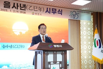영천시(시장 최기문)는 2일 시청 대회의실에서 직원 140여 명이 참석한 가운데 2025년 시무식을 가지며 힘찬 출발을 다짐했다.최기문 영천시장은 충혼탑 참배로 새해 시작을 알렸으며 시무식을 통해 “꿈과 변화를 뜻하는 푸른 뱀의 기운으로 소망하는 일 모두 성취하시길 기