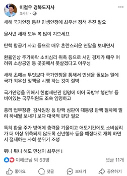 이철우 경북도지사는 신년사를 시작하며 제주항공 여객기 사고로 희생된 분들의 유족과 국민께 깊은 애도의 마음을 표하며 경북이 할 수 있는 최대한의 지원을 다하겠다고 1일 밝혔다. 이 지사는 희망을 품고 다시 걸음을 옮길 때라며 올해에는 경북이 선두에서 초일류국가