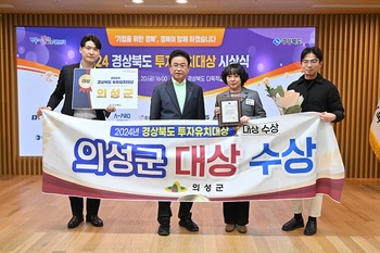 의성군(군수 김주수)은 지난 20일 경북도청에서 개최된 ‘2024년 경상북도 투자유치대상’시상식에서 투자유치 활성화를 위한 노력을 인정받아 2년 연속 대상을 수상했다.‘경상북도 투자유치 대상’은 도내 22개 시군을 대상으로, 투자유치 업무협약(MOU) 체결 및 일자리