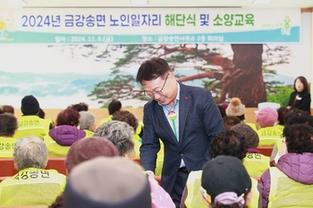 울진군 울진읍(읍장 윤미경)은 지난 6일 울진읍사무소 2층 회의실에서 2024년 울진읍 노인일자리사업 해단식 및 소양교육을 실시했다.이번 해단식은 2024년 울진읍 노인일자리사업 참여자(187명)들의 일년 동안의 노고에 대한 감사의 의미로 마련됐으며 경상북도 교통문화연