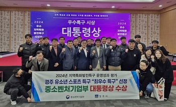 ‘경주 유소년 스포츠 특구’가 중소벤처기업부 주관 ‘2024년 지역특구 평가’에서 전국 1위에 올라 대통령상을 수상하는 영광을 차지했다.경주시(시장 주낙영)는 10일 경주화백컨벤션센터에서 열린 ‘중소벤처기업부 운영성과 평가 대통령상 수상 및 시상식’에서 이같은 성과를