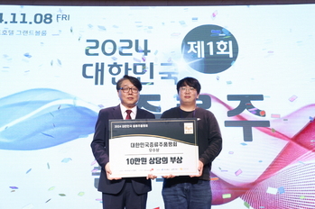 경북 문경시는 동로면에 소재한 문경주조에서 생산하는 일반증류주 폭스진(FOX GIN)이 제1회 대한민국 증류주 품평회에서 우수상(사진)을 받았다고 26일 밝혔다.이번 품평회는 전국 양조장 80곳에서 113개 브랜드를 출품해 증류식소주, 일반증류주, 리큐르, 가양주 등