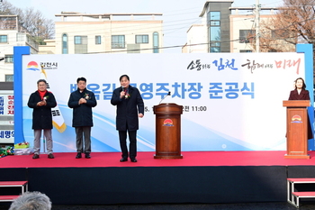 경북 김천시가 17일 백옥동 노증리 마을회관 앞에 조성된 공영주차장에서 배낙호 시장과 나영민 의장을 비롯한 기관단체장과 지역주민 200여명이 참석한 가운데 준공식을 가졌다. 백옥길 공영주차장은 12억 3600만원을 투입해 580평 부지에 51면 규모로 조성했다