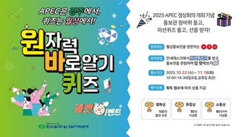 한국수력원자력(주) 월성원자력본부(본부장 권원택)는 지난 22일부터 11월 18일까지 2025 경주 APEC 정상회의를 기념하고 국민들의 원자력에 대한 올바른 이해를 돕기 위해 ‘원자력 바로알기 퀴즈 룰렛이벤트’를 진행한다고 밝혔다.이번 이벤트는 기간 내 월성본부 홍보