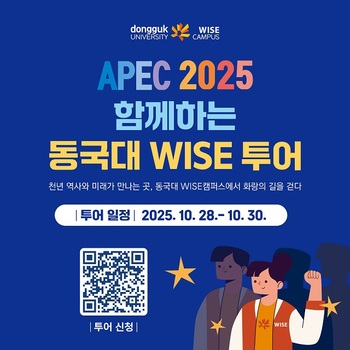 동국대학교 WISE캠퍼스(총장 류완하)는 2025 APEC 정상회의의 성공 개최를 기원하며, APEC 방문객 및 지역 시민을 대상으로 캠퍼스 특별 프로그램 ‘WISE Tour(와이즈 투어)’를 운영한다고 밝혔다.이번 프로그램은 오는 28일부터 30일까지 3일간 하루 한