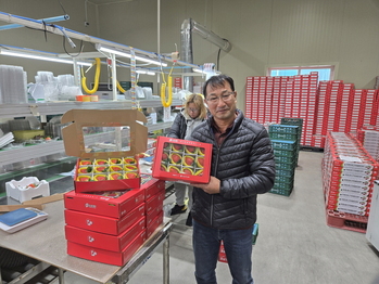 경북 상주시 남상주딸기수출공선회(회장 김성구)가 16일 청리면 남상주농협에서 수출용 딸기 신품종인 '아리향' 수출 선적식을 가졌다. 아리향의 첫 해외시장 진출인 인도네시아 수출은 상주시 프리미엄 딸기의 해외시장 가능성을 보여주었다.아리향 생산 농가는 외남면 ‘