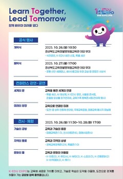 경북교육청(교육감 임종식)은 26일부터 28일까지 3일간 경주시에 있는 경북도교육청발명체험교육관 일원에서 ‘K-EDU EXPO’를 개최한다고 15일 밝혔다.이번 행사는 2025 APEC 정상회의 공식 부대행사로, ‘Learn Together, Lead Tomorrow(