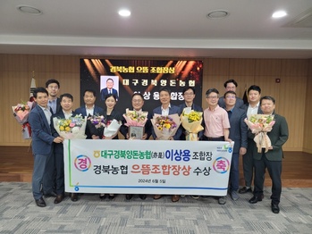 경북농협(본부장 임도곤)은 5일 대구경북양돈농협 이상용 조합장이 ‘경북농협 으뜸 조합장상’ 수상자로 선정됐다고 밝혔다.경북농협 으뜸 조합장상은 ▲계통간 상생·발전 ▲농·축협간 협력 ▲사업추진 우수 ▲농가소득 증대 기여 ▲농업·농촌·농협 발전을 위한 이미지 제고에 기여한
