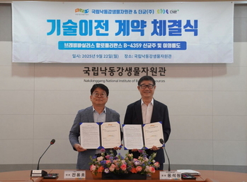 경북 상주시에 있는 환경부 산하 국립낙동강생물자원관아 식물 병충해 방제재를 생산하는 더균(대표이사 전용호)과 식물 탄저병 방제 효능을 가진 담수미생물의 활용에 대한 기술이전 계약(사진)을 체결했다고 24일 밝혔다. 이전되는 기술은 낙동강생