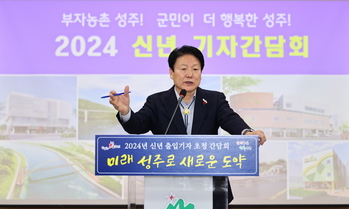이병환 성주군수(사진)가 25일 군청에서 신년 기자간담회를 갖고 "올해를 발전을 위한 밑그림이 가시적인 성과로 나타나는 새로운 도약의 원년으로 만들어 갈 것”이라고 밝혔다.이 군수는 지난해는 최초 본예산 6000억원 시대 개막과 참외 조수입 6000억원 달성, 건강문화