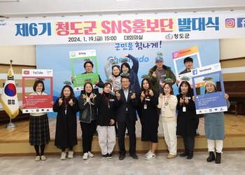청도군(군수 김하수)은 지난 19일 군청 대회의실에서 제6기 청도군 SNS홍보단 발대식을 가졌다. 이날 행사에서는 위촉장 전달과 함께 홍보단 역할 교육, 공감·소통 시간을 가지며 단원들의 적극적인 참여를 당부했다.지난해 11월 20일 동안에 걸친 모집을 통해