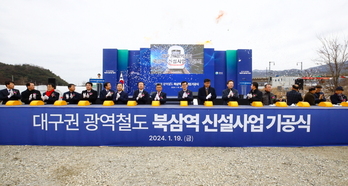 경북 칠곡군은 지난 19일 지역 숙원사업인 대구권광역철도 북삼역 신설 기공식을 역사건립 현장에서 지역주민 500여명이 참석한 가운데 열렸다. 북삼역은 국가철도공단에서 기존 경부선 철로를 활용해 구미~대구~경산 간 대구권광역철도가 통과하는 북삼읍 율리에 신설하는
