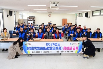 고령군(군수 이남철)은 1월 5일 오전 10시, 자활교육장(대가야문화누리 2층)에서 일반형 장애인일자리(전일제·반일제) 참여자 30여 명을 대상으로 장애인일자리사업 발대식 및 기본교육을 실시했다.본 사업은 일자리를 얻기 힘든 취업 취약계층인 장애인들에게 공공일자리를 제
