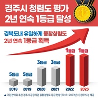경주시는 국민권익위원회 주관 전국 498개 대상 공공기관 청렴도 평가에서 종합 1등급을 달성했다고 28일 밝혔다.지난해 이어 2년 연속 1등급 획득으로 2017·2018·2019년 3년 연속 5등급에 머물렀던 것과 비교 무려 5계단 수직 상승한 성적이다.국민권익위원회는