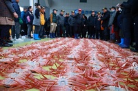 울진군(군수 손병복)은 지난 10일 죽변수협 위판장에서 울진 대게의 첫 위판이 진행됐다고 12일 밝혔다.이날 오전 8시부터 어업인 및 중매인과 관광객 등 400여 명이 모인 가운데 죽변항으로 입항한 자망어선 28척에 대한 대게 첫 위판이 이뤄졌으며 전체물량 1만1860