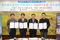 경주시는 4일 시청 대회의실에서 주낙영 경주시장, 전우헌 경북사회복지공동모금회 회장, 김동엽 경주시지역사회보장협의체 민간위원장, 변동훈 코나아이 부사장이 참석한 가운데 경주페이 연계 기부 서비스인 ‘HAPPY 동행’ 업무협약을 체결했다. 이 기부 서