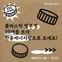 한국수력원자력(주) 한울원자력본부(본부장 이세용, 이하 한울본부)는 20일부터 ‘한울본부 ESG 병뚜껑 업사이클링 장난감 기부 이벤트’를 진행한다고 밝혔다.이번 이벤트는 플라스틱 병뚜껑 재활용을 통한 친환경 실천을 장려하기 위해 마련됐다. 참여 희망자는 한울에너지팜 내