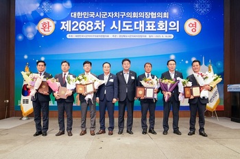 대한민국시군자치구의회의장협의회(회장 김현기)는 16일 경주 힐튼호텔에서 제268차 시도대표회의를 개최했다.경상북도시군의회의장협의회(회장 이동협 경주시의장)에서 주관한 이번 회의는 전국 시도대표 회장을 비롯해 경북시군의회의장협의회와 경주시의회 의원, 의정봉사상 수상자 등