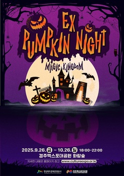 경북문화관광공사(사장 김남일, 이하 공사)는 지난여름 관람객을 오싹하게 만들었던 공포 체험 ‘EX-HORROR’에 이어, 가을밤 경주엑스포대공원을 환상적인 호박들의 나라로 변신시킨다. 오는 26일부터 10월 26일까지 매일 저녁 6시부터 10시까지 화랑숲에서