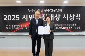 경주시의회 한순희 의원이 지난 13일 서울 마포구 DMC 첨단산업센터 세미나포럼장에서 열린 ㈜법률저널 주최 ‘2025 지방의정대상-우수조례 및 우수연구단체 시상식’에서 입법활동 부문 장려상을 수상했다.지방의정대상 입법활동 부문은 전국 기초·광역의원들을 대상으로 입법성과