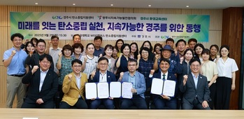 동국대 WISE캠퍼스(총장 류완하) 경주시 탄소중립지원센터(센터장 박성범)가 지난 2일 동국대학교 WISE캠퍼스 산학협력관 탄소중립지원센터에서 ‘미래를 잇는 탄소중립 실천, 지속가능한 경주를 위한 동행’을 주제로 다자간 업무협약(MOU)을 체결했다.이번 협약은 경주시,