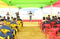 ‘힐링명소’ 청송정원, 황금물결 청보리 수확