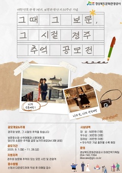 경북문화관광공사(사장 김남일, 이하 공사)가 보문관광단지 50주년을 맞아 ‘그때 그 보문, 그 시절 경주’ 추억 수기 공모전을 개최한다고 밝혔다.이번 공모전은 경북 도민을 비롯한 전 국민을 대상으로, 보문호 가족 나들이, 보문관광단지에서의 신혼여행과 수학여행, 보문단지