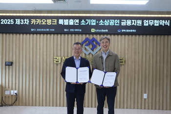 경북신용보증재단은 카카오뱅크와 '2025 카카오뱅크 특별출연 금융지원 및 ' 2025 카카오뱅크 특별출연 외식업·전통시장 활성화 금융지원 업무협약(사진)을 체결했다rh 3일 밝혔다.. 이에 따라 카카오뱅크는 40억원을 특별출연하고, 경북신용보증재단은