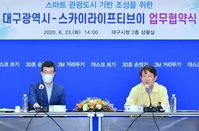 대구시와 스카이티브이(SKY TV)는 23일 대구시청 2층 상황실에서 ‘스마트 관광도시 기반 조성을 위한 업무협약’을 체결했다.대구시는 코로나19 이후 예상되는 소규모·비대면 중심으로 여행 트렌드 변화에 맞춰 쇼핑·교통·관광정보 등에 있어 보다 편리한 여행이 되도록 스