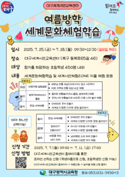 대구시교육청, 초등학생 위한 ‘여름방학 세계문화체험학습’ 행사 운영