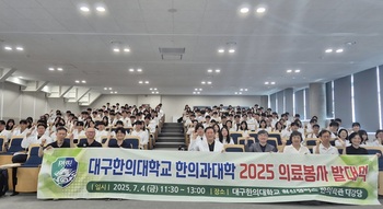 대구한의대학교 한의과대학은 지난 4일 대구 혁신캠퍼스 한의학관 대강당에서 한의학과 교수와 학생 150여 명이 참석한 가운데 ‘2025년도 하계 의료봉사단 발대식’을 가졌다.올해 34회째를 맞은 의료봉사단 발대식은 작년에 이어 더 발전되고 확장된 규모로 진행되는 하계의료