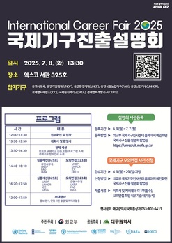 대구광역시는 외교부와 공동으로 국제기구 진출을 희망하는 지역 인재들에게 맞춤형 정보와 현장 경험 등을 제공하기 위해 국제기구 인사담당관을 초청해 7월 8일 대구 엑스코에서 ‘제18회 국제기구 진출 설명회’를 진행한다.외교부는 2008년부터 서울, 부산 등에서 국제기구