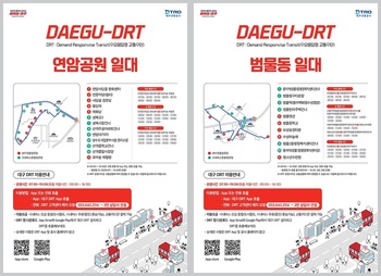 대구광역시는 대중교통 소외 주거지역의 교통 불편을 해소하고 시민의 이동권을 보장하기 위해 현재 의료R&D지구, 첨단의료복합단지, 수성알파시티에서 운행 중인 수요응답형 교통수단(DRT)을 오는 6월 10일부터 북구와 수성구 주거지역 2개소로 확대 시행한다.이번 확