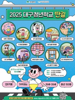 대구광역시는 청년들의 새로운 진로 가능성을 열어줄 진로교육 프로그램 ‘대구청년학교 딴길’에 참여할 청년들을 6월 11일부터 6월 26일까지 모집한다.‘대구청년학교 딴길’은 진로와 삶의 방향을 고민하는 지역 청년들을 대상으로, 청년단체가 학과를 개설해 색다른 진로 경험의