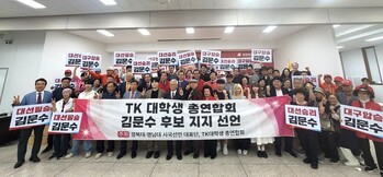 TK 대학생 총연합회는 5월 22일 오후 4시, 대구시당 5층 강당에서 김문수 대통령 후보 지지선언을 했다.이날 지지선언에서 조용균 대구자유청년포럼·경북대 대표는 “위기의 시대에 진정성과 강한의지, 추진력으로 자유대한민국의 새로운 도약을 이끌 수 있는 리더는 오직 김문