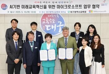 대구시교육청(교육감 강은희)은 5월 15일 오후 4시, 시교육청 여민실에서 한국마이크로소프트(대표 조원우)와 미래 교육 혁신을 위한 업무협약을 맺는다.이번 협약은 인공지능 기반 도구를 활용하여 학생과 교원의 디지털 역량을 강화하고, 교원의 교수학습 능력 및 행정 업무